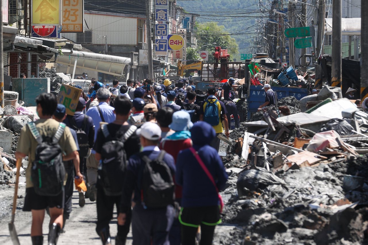 President Lai Ching-te promised to help residents of Guangfu Township in Hualien return to normal life before the Mid-Autumn Festival. He announced via Facebook that the Ministry of National Defense would deploy cross-regional reinforcement troops to rotate in the disaster area. However, according to Hualien County Government statistics, over 1,600 households still await mud removal. Disaster victims and volunteers repeatedly call for an urgent need for bobcats and other heavy machinery. Otherwise, urban roads continue to be occupied by mud and garbage, and traffic congestion will inevitably slow down cleaning efficiency.